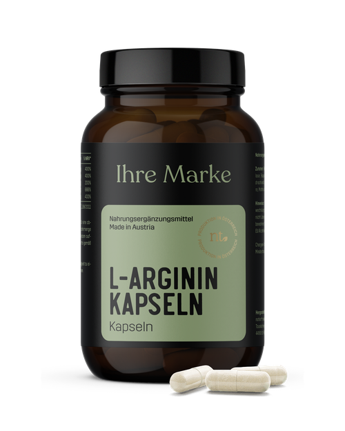 L-Arginin Kapseln mit 700 mg L-Arginin pro Kapsel. Die nicht essentielle Aminosäure dient als Vorstufe von Stickstoffmonoxid (NO) und ist Bestandteil zahlreicher Stoffwechselprozesse. Ideal zur täglichen Ergänzung der Ernährung - klar dosiert und ohne bekannte NRV.